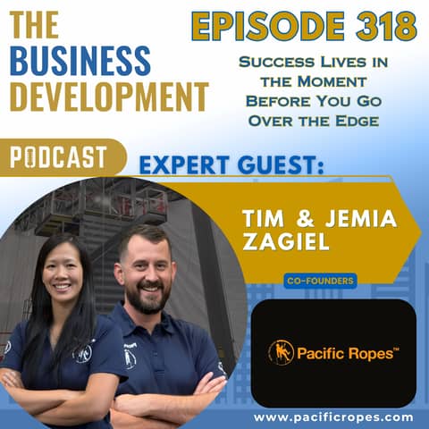 In Episode 318 of The Business Development Podcast, Kelly Kennedy sits down with Jemia and Tim Zagiel, Co-Founders of Pacific Ropes, to explore what it truly means to build a business in an environment where courage is not op...